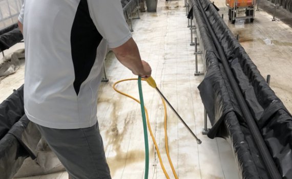 昨日に引き続き、動力噴霧器と高圧洗浄機を用いて、二手に分かれて床を掃除していきます。 動力噴霧器の […]