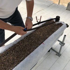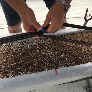 しあわせファーム トマト作り 【第2期】3.潅水チューブ張り by sads|Published 2018年8月9日土入れが完了したので、定植前の準備の一つ、苗を植える間隔を図って目印線をつけていきます。今期は前期よりも間隔を短くたくさん植えるようにしました。その後、潅水チューブを張っていきます。 これで定植前の準備は完了しました。
