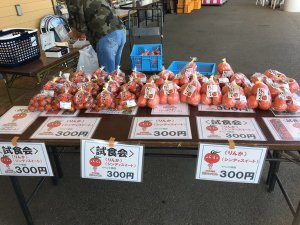 朝9時から13時頃までトマトの試食販売をしています。